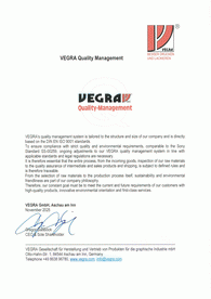 遵守严格的质量和环境要求有效促进了维格拉质量管理体系的持续改进。通过对从原材料到产品发运调度的全过程进行控制和可追溯,保证了本公司得以生产最为环保的高品质产品。通过这种方式,本公司的工艺不断优化,并杜绝可能对环境造成伤害的工艺步骤。